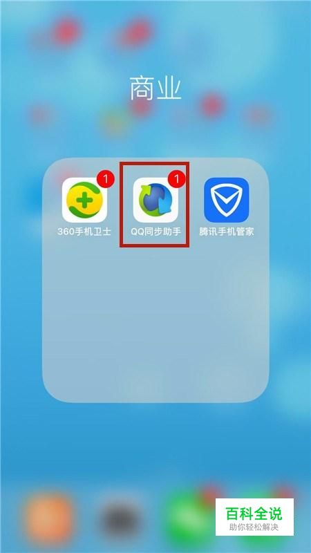 首先在我们的手机桌面上找到QQ同步助手并点击它,如下图所示。