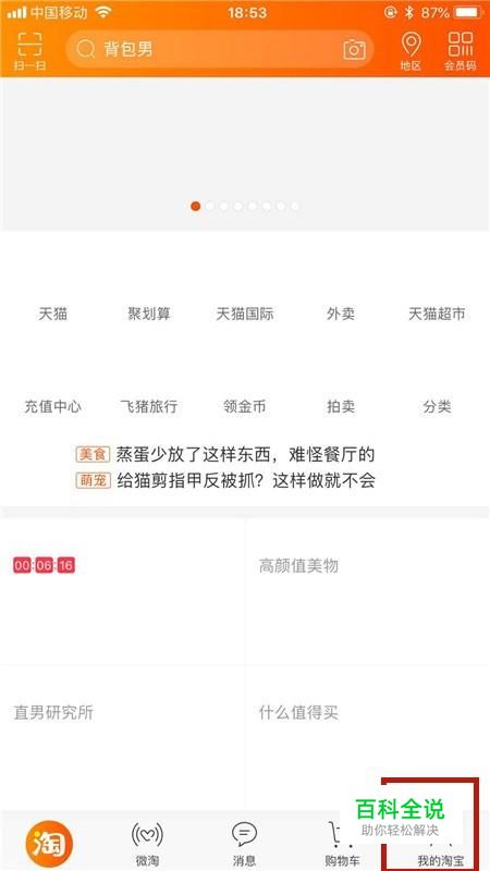 首先点击屏幕右下方的我的淘宝,如下图所示。