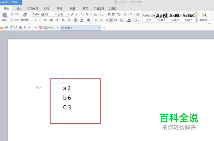 在Word文档的空白位置,输入【a 2,b 6,C 3】,如下图所示: