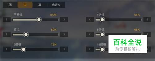 然后,我们设置的就是镜头灵敏度,这里有各种倍镜的灵敏度,推荐大家将红点倍镜下的灵敏度设置成80,将四倍镜下的灵敏度设置成60.