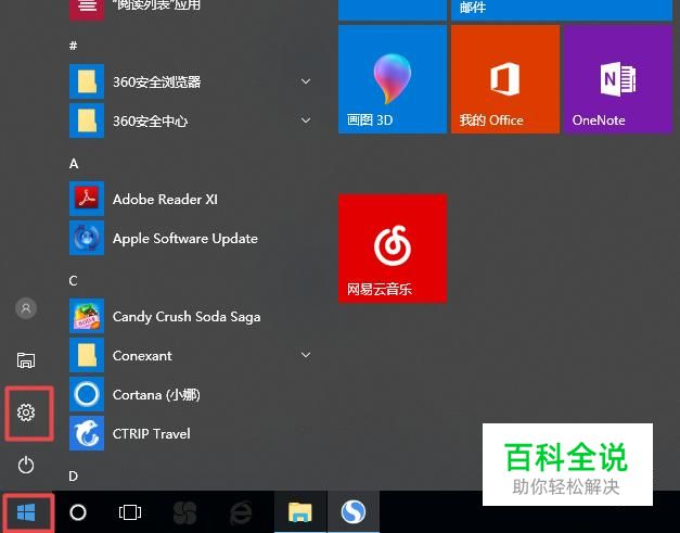 首先,我们点击电脑左下角的微软按钮,弹出的界面,我们点击设置;