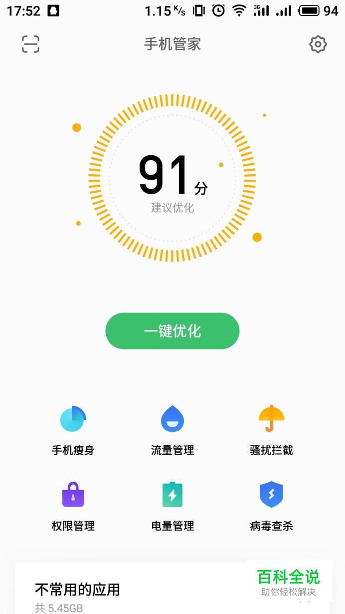 进入手机管家界面,在界面中点击“一键优化”