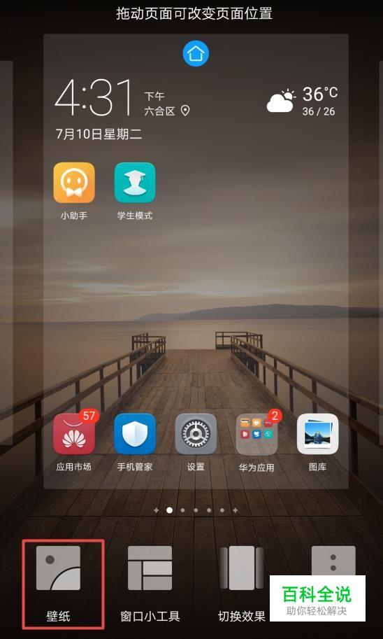 首先,我们打开我们的华为手机,然后我们长按手机桌面的空白处;