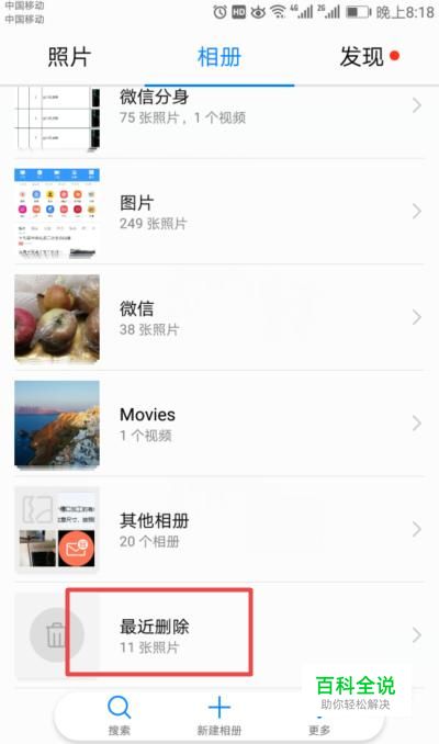 进入图库之后,我们下拉界面,找到最近删除,然后点击它;