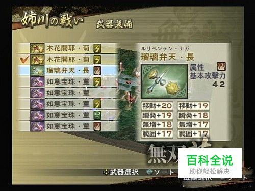 武器名称 瑠璃弁天·长 所属人物 阿市 获得关卡 小谷城攻略战 游戏模式 无双演武限定 限定难度 难或以上 获得方法:一开始阻止敌人进入我军城池,然后,援护工作部队顺利达到开工,攻破朝仓军本阵,这时秀吉破城墙事件发生。等墙破后,打中丸的事件引发,制压后再去攻下小丸,接着去击破偷袭我方本阵的敌将,达到400人斩后,就有贵重品出现,在地图右下方。