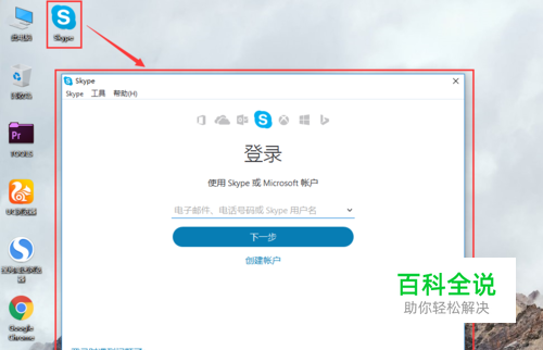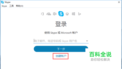 安装好后,双击启动桌面的skype软件。然后在sype主界面登录下方点击【创建账户】。