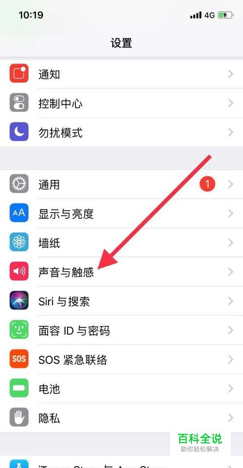 进入设置页面后,我们找到“声音与触感”,点击将其打开