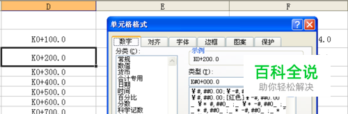 第一步:看清楚D14,E14的单元格格式,D,E格式为 K#0+000.0