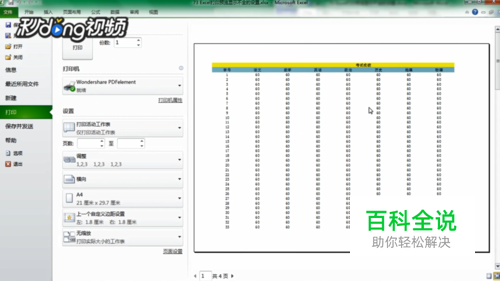 将表格进行预览查看,点击菜单栏中的“文件”,点击“打印”,右侧会出现预览页面,可以看到,因为表格太大,只能分多页预览。