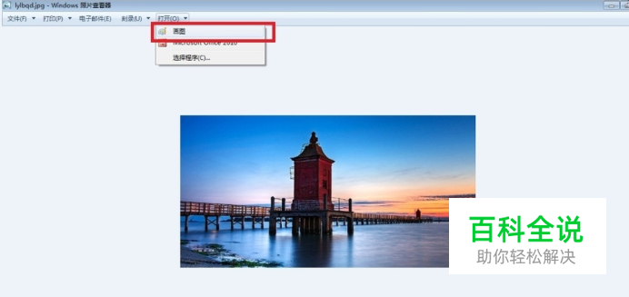 在上面的工具栏里点击“打开”--“画图”,如下图: