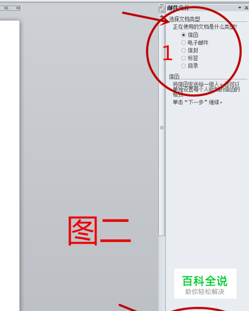 右侧区域默认信函,然后直接点下一步就可以了(如图二)