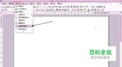 启动Word 2003,新建一个文档,点击菜单栏上的“视图”,在下拉菜单中选择“页眉和页脚”如图所示。