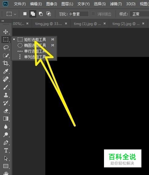 首先在左侧的工具栏中选择矩形选框工具。