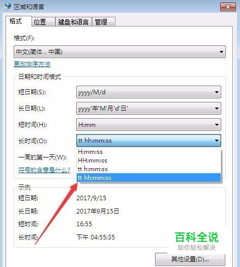 这时会打开区域设置窗口,在窗口中找到“长时间”菜单项
