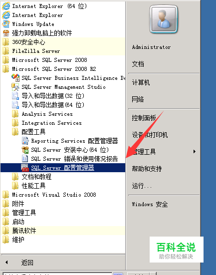 开始->所有程序->Microsoft SQL Server 2008 R2->配置工具->SQL Server 配置管理器