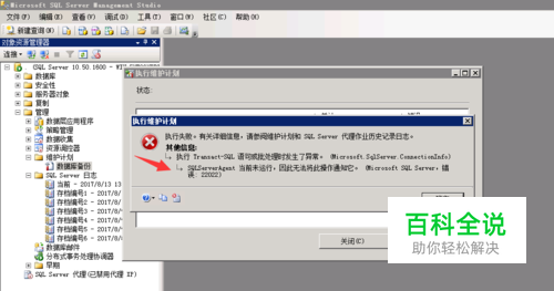 小编在sql server 2008数据库,维护计划中数据库自动备份,没执行。没执行原因SQLServerAgent服务没开启,如何开启?