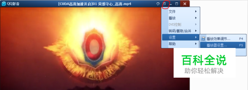 打开QQ影音,点击右上角的选项栏 --> 设置 --> 播放器设置,如图所示: