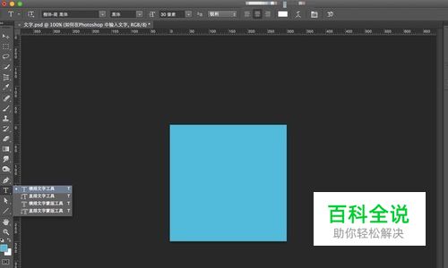 点击左边工具栏中的文字工具,默认选择“横排文字工具”,点击画布,出现光标后输入文字“如何在Photoshop中输入文字”。