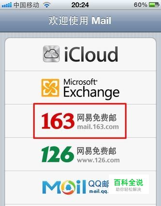 在列表里选择想要登陆的邮箱类型,小七选择163的邮箱