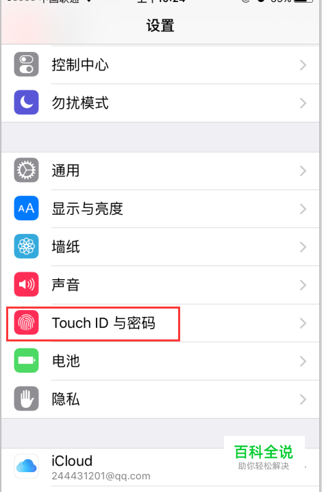2、进入设置之后,然后找到Tocuh ID与密码,然后点击进入,如下图。