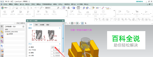 先打开模型文件,进入到加工模块。首先创建一把加工需要的刀具,我这里使用的是一把直径16的平底铣刀,对刀具参数进行相关设置。