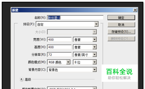 启动PS,新建文件,画布设置为蓝色底,大小为400X400像素,按自己实际需要设置,小编在这里只是作个示例。
