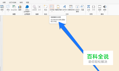 首先我们再PPT显示文稿,插入一个横排的文本框。