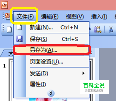 打开ppt,插入图片后,点击上方工具栏中的文件,在下拉框里选择“另存为”。