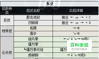 下面是我制作的东丈连招技能表,大家可以参考下图来熟悉东丈的出招方式