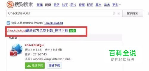 打开浏览器,通过搜狗搜索引擎搜索”CheckDiskGUI“。