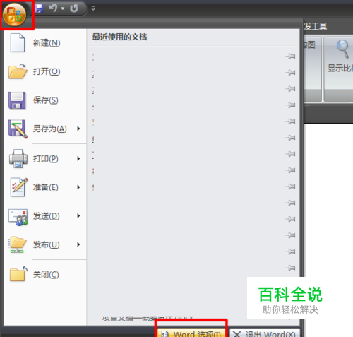 Word2007设置方法: 点击“Office按钮”,在弹出的下拉菜单中点击“Word选项”。