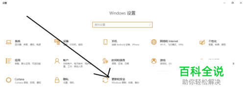 然后打开Windows设置对话框中选择点击更新和安全选项。