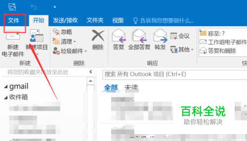 小编以outlook2016为例讲解,启动电脑上的outlook,点击文件,如下图所示