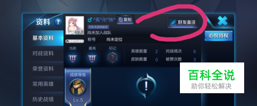 然后我们再以一个游戏好友为例进行尝试,我们同样的,点击进入他的资料页面,然后我们看到那里有个设置备注的选项