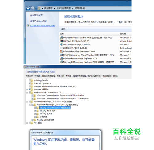 1.先更改W7的设置,在控制面板->程序和功能——>打开或关闭WINDOWS 功能,勾选激活“MICROSOFT.NET FRAMEWORK 3.5.1”(如果没有激活,将会导致SIMATIC NET 站组态编辑器无法安装),勾选MICROsoft MESSAGE QUEUE(MSMQ)服务器。
