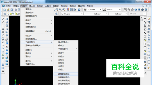 打开AUTOCAD2004软件,并新建图形,将视图设置为西南等轴测,再利用UCS命令,将视图沿Y轴旋转90度