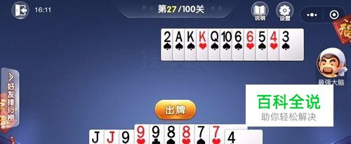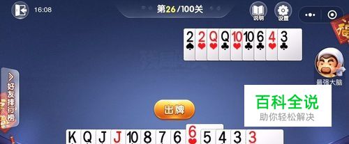 第26关有点难,首先我们出6点,然后出q,再出10点和k压住,拆开对j后出顺子和对3顺利通关。