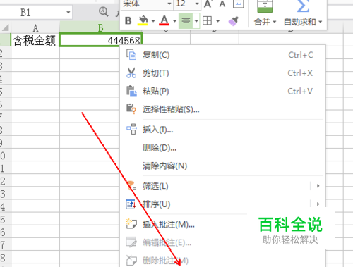 右击该单元格,在弹出的菜单中单击“设置单元格格式”选项。