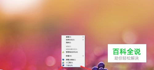 在桌面上空白处上右击鼠标,在弹出的菜单中单击个性化。