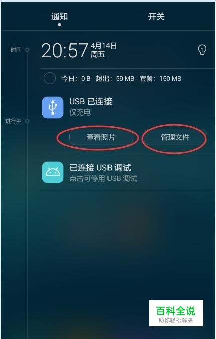首先把手机连接电脑,然后把手机向下拉,点这里