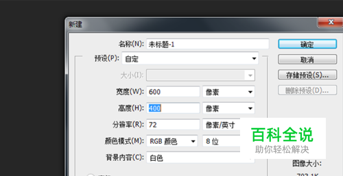 第一步首先要按“文件-新建”新建一个“600*400”像素一样大小的画布。