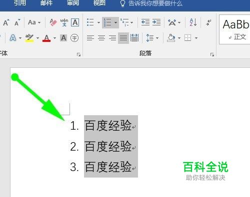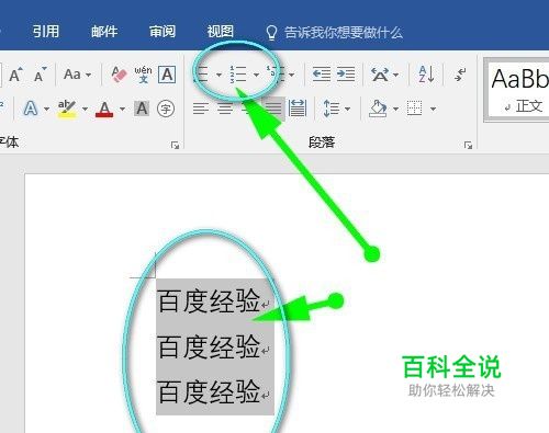 选择Word文档中要添加符号的段落内容并点击开始菜单的这个图标即可。