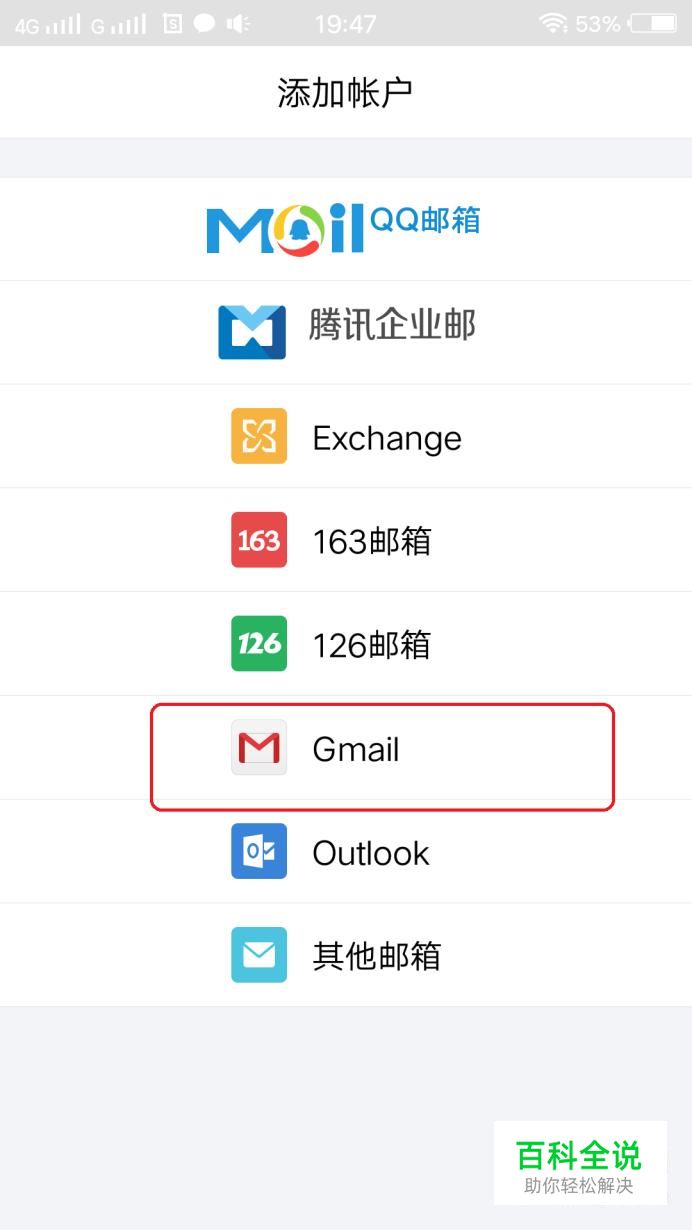 安装完毕后,打开手机QQ邮箱,首页需要“添加账户”,我们点击Gmail,就能关联到谷歌账号。