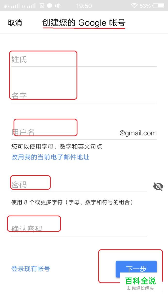 填写信息,创建密码后,点击“下一步”,只要您输入的账号没有人用过,就能注册成功了。