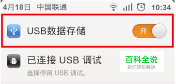 步骤一:请打开手机的USB调试,将手机用USB数据线连接到电脑上,在手机弹出的USB设置/连接PC的选项中选择“大容量储存模式”。