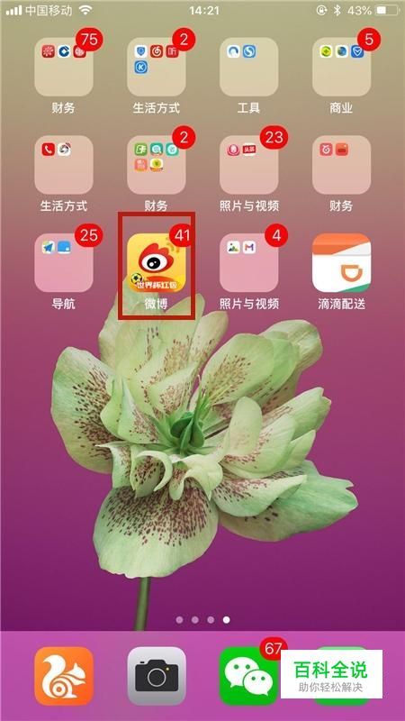 首先在我们的手机桌面上找到微博并点击它,如下图所示。