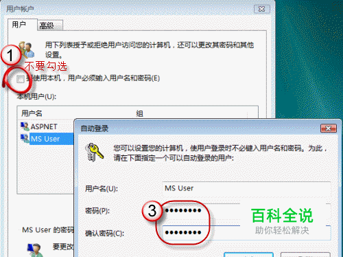 开机直接登录进入系统,取消登录界面 1、点“开始”/“运行”或用快捷键win+r 2、复制输入:Rundll32 netplwiz.dll,UsersRunDll或control userpasswords2 3、去掉“要使用本机,用户必须输入用户名和密码”前面的勾 4、点“确定” 5、在弹出的“自动登录”界面,选择设置自动登录的用户名、密码(无密码时不用输入) 6、最后“确定”退出,就OK了
