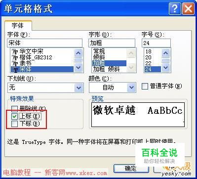 Excel中设置字符上、下标的方法