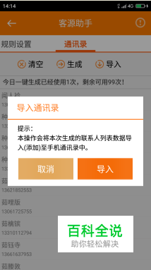 首先需要设置好规则,然后点击通讯录,然后点击“生成”按钮,就可以根据设置好的城市和号码段生成对应的号码,然后点击“导入”就可以把号码导入到手机的通讯录里面。