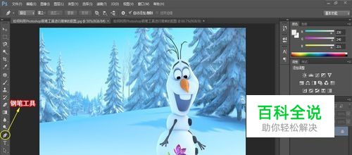 首先用Photoshop打开图片,我们的任务就是利用钢笔工具抠出雪人可爱的胡萝卜鼻子。
